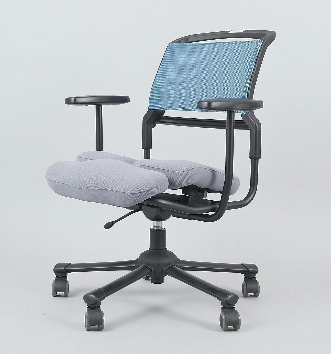 「Knowbody Chair K-35」は、骨盤が後方回旋の状態にならないように骨盤を支え、腰椎のCラインを維持する設計を採用。長時間座っていても腰の疲労を感じにくい椅子を実現しました。